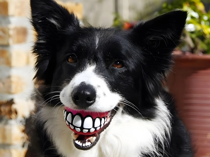 What It Does: A Novel Chew Toy for Dogs The price is $7. Dog chew toys come in a variety of sizes and shapes; we've seen whole pizzas, broccoli, and more in addition to the typical bone shapes. But a novelty is incomparable. For about $7, you can get dog chew toys that make your dog appear to be grinning toothily at you.